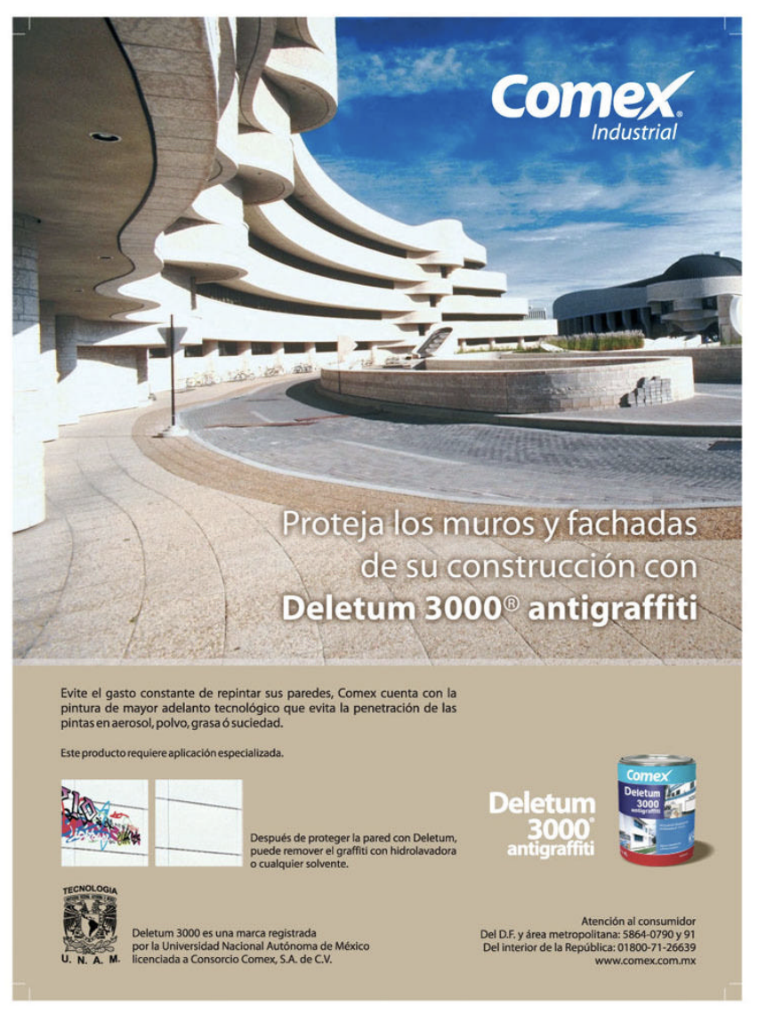 En 2001, doctores del Instituto de Física Aplicada y Tecnología Avanzada de la UNAM diseñaron la primera pintura antigrafiti comercialmente exitosa y reconocida como una innovación única en su tipo. Registrada bajo el nombre “Deletum 3000″, esta pintura utiliza nanotecnología y agentes hidrofóbicos (que repelen el agua) y lipofóbicos (que repelen el aceite), lo que impide que el grafiti se fije y permite limpiarlo simplemente con agua o una cinta adhesiva.